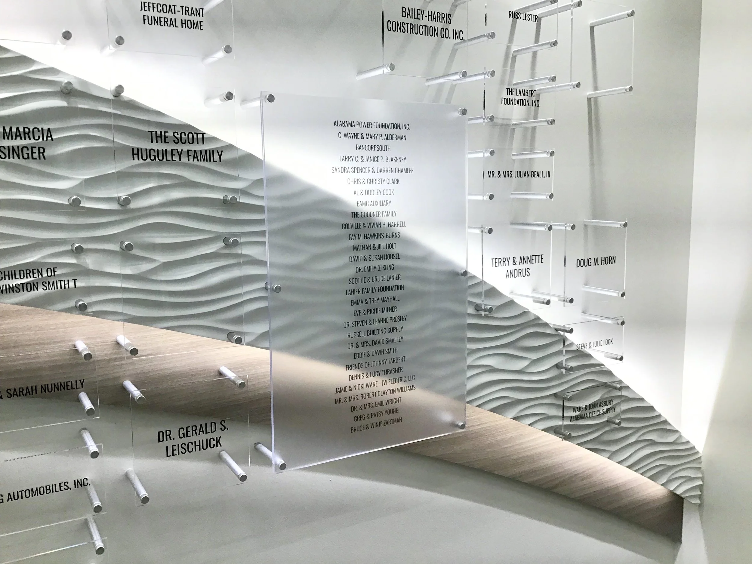We are proud to have been a part of the team working to recognize the donors whose goal it is to help beat cancer! Contact us today to learn how we can help you recognize your donors and create a display that honors them, respects the mission and vision of your organization, and reflects your unique and beautiful architecture.